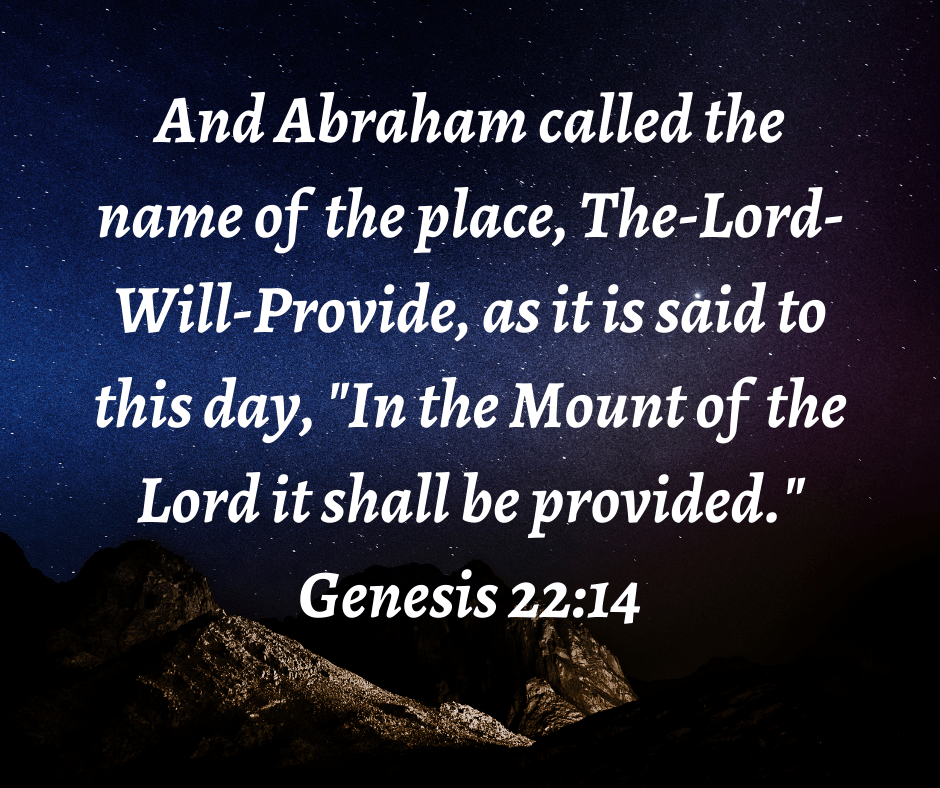 Maybe you are facing a difficult situation that seems hopeless. It could be a financial situation, your health, or maybe even your job or lack of a job. With God all things are possible. He will provide for our every need if we have faith to believe and not doubt. Big or small nothing is too difficult for Him. If Abraham who faced the difficult situation of sacrificing Isaac, had enough faith to believe that the Lord would provide. How can we not believe that He will provide for our situation?
