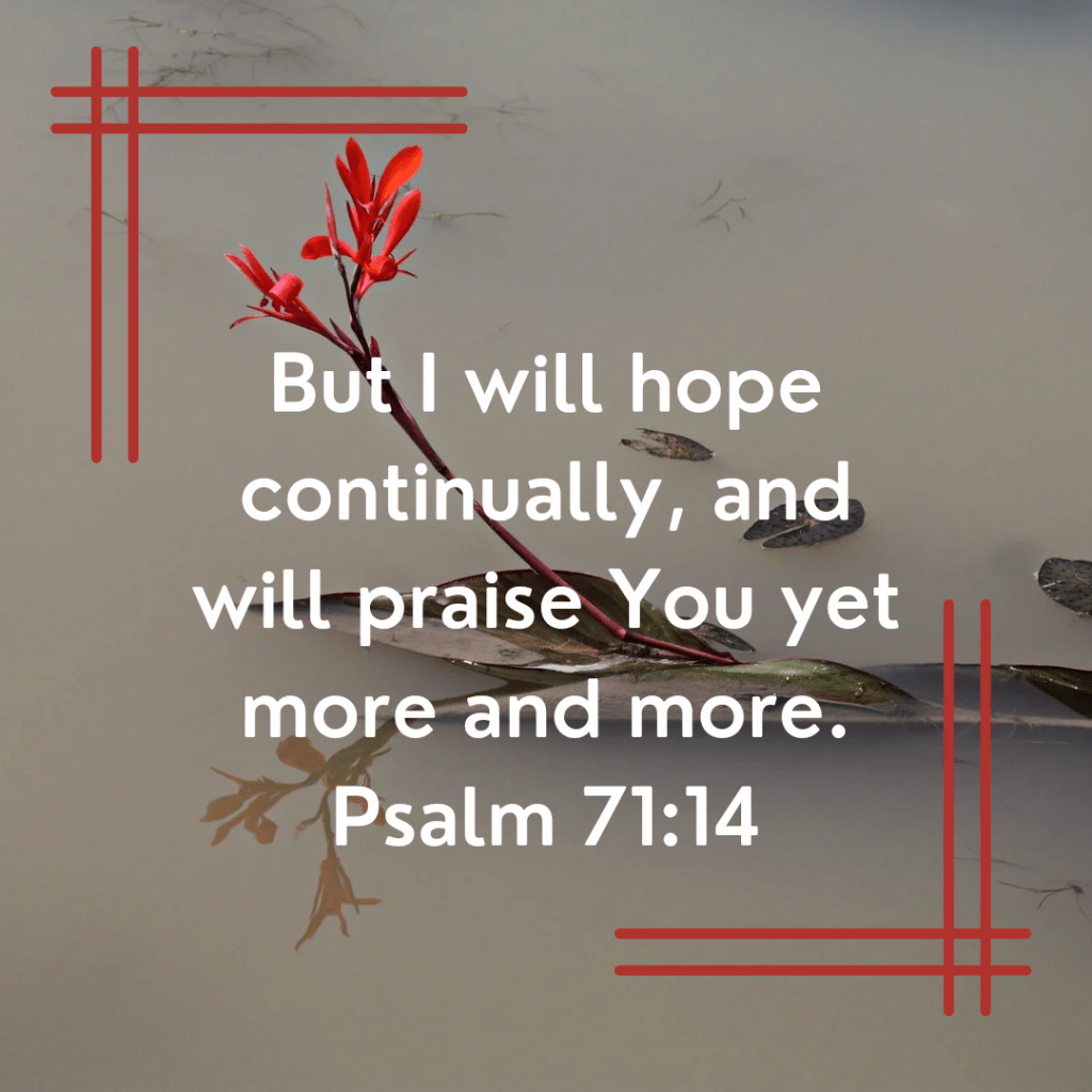 Recently it has felt like a whirlwind of anything that could go wrong has. Yet I choose to praise the LORD and put my hope and trust in Him. Maybe you’re experiencing something similar, and it feels like you just can’t catch a break. Praise Him. Put all your hope in the LORD. What the enemy means for harm the LORD will turn for good. You may not see it right in that moment of whatever you may be going through but keep on praising the LORD and put your hope in Him. Praise Him through the battle; praise Him after He brings you through the battle. Praise Him always. Have a blessed day in the LORD!